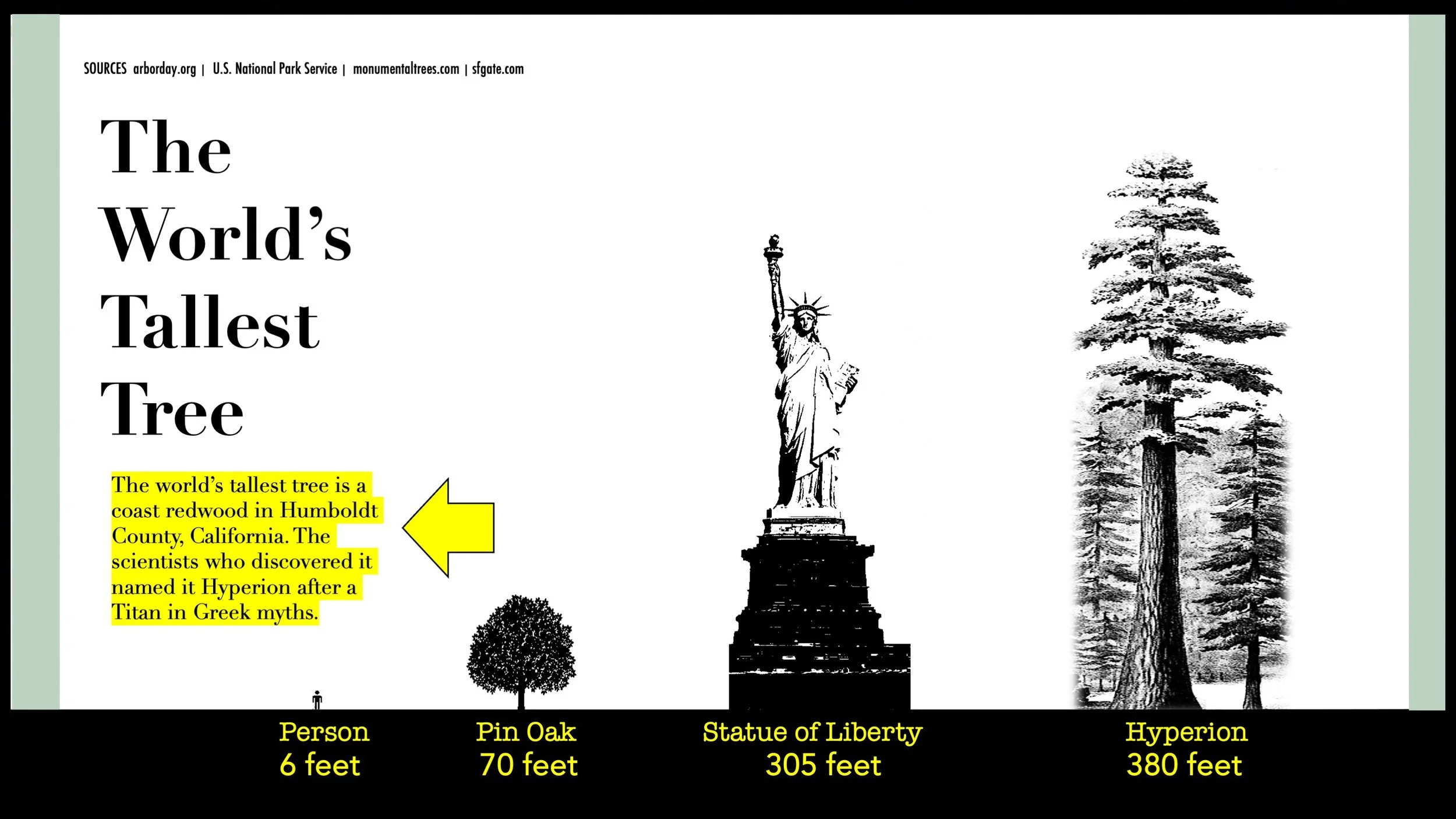 The intro gives important background information. Each caption identifies what’s pictured and indicates its height measured in feet.